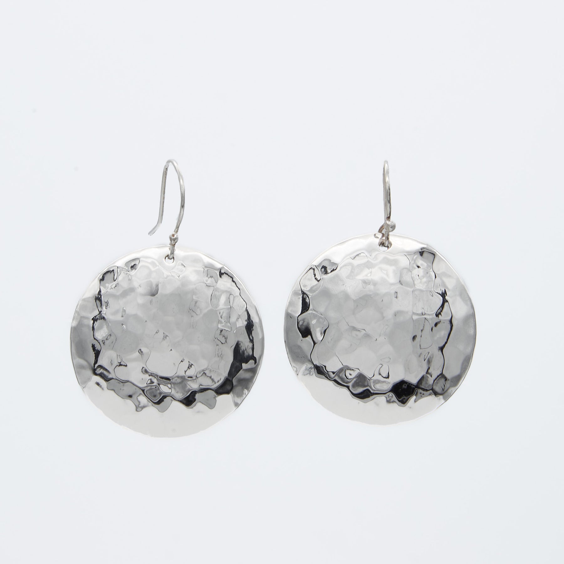 Renata Rubio 92.5 presents these elegant hammered sterling silver disk earrings, designed with a slightly domed surface for a modern yet timeless appeal. Measuring 1.3 inches in diameter, these earrings are a versatile statement piece that transitions effortlessly from day to evening wear. The artisanal hammered texture reflects light beautifully, highlighting the handcrafted nature of each pair.